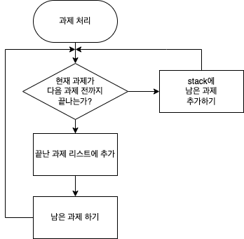 과제에 대한 정보인 [name, start, playtime]을 원소로하는 plans 배열이 주어지고 정해진 규칙에 따라 과제를 처리한다.