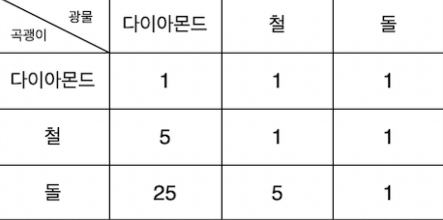 다이아 곡괭이, 철 곡괭이, 돌 곡괭이로 광물(다이아, 철, 돌)을 캐야한다.