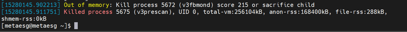 명령어를 실행시켜보니 Out of memory되어 프로세스가 죽었다는 것을 알게 되었다.