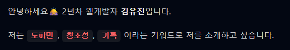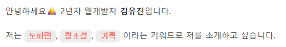 노션에 하이라이팅했던 단어들이 포트폴리오 페이지에서는 다르게 보여지고 있다.