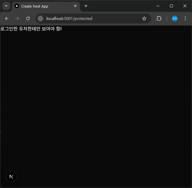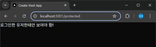 접근권한 제한을 테스트하기 위해 /app/protected/page.tsx 파일을 생성한 후 간단한 페이지를 만들었다.