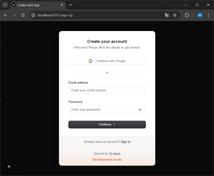 서버를 실행하고 /sign-in 경로와 /sign-up 경로로 접속하여