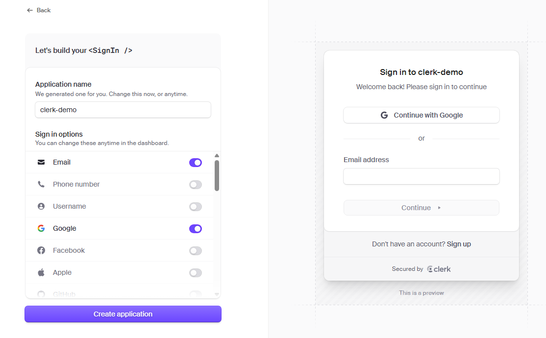 https://dashboard.clerk.com/apps/new