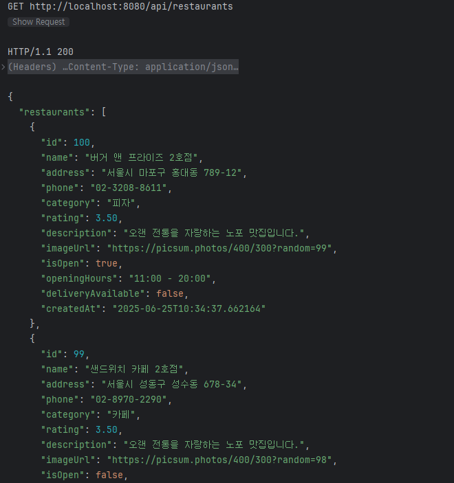 식당 목록을 조회하는 간단한 api를 구현하려고 해.
