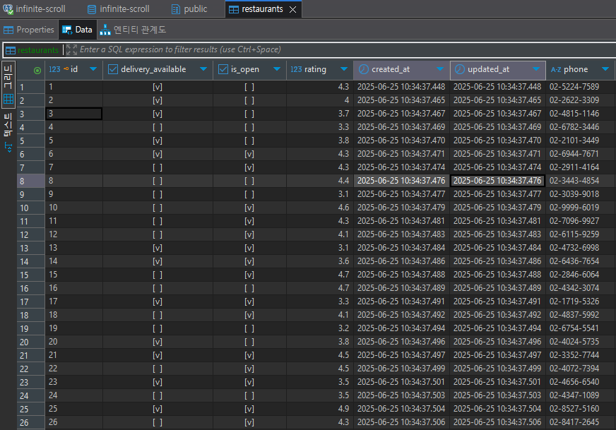 3. 식당 목록을 조회하는 api를 구현해줘. 이 api는 무한스크롤용 api야.