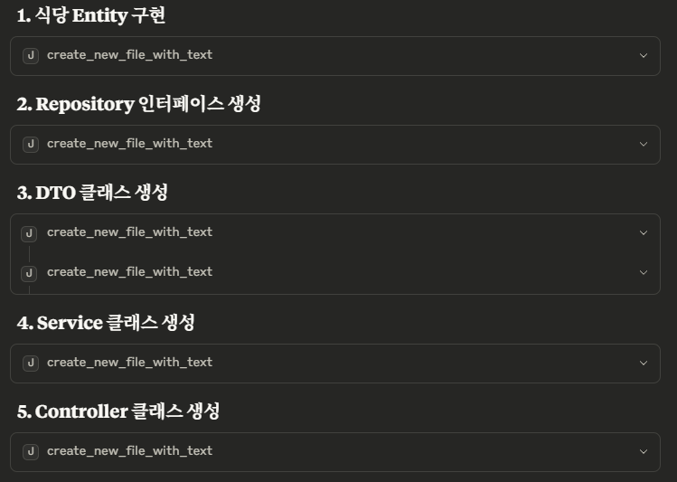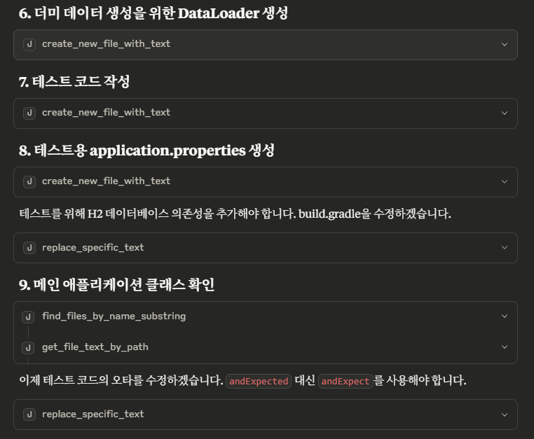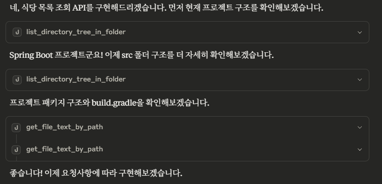 프롬프트를 입력하면 프로젝트 구조와 build.gradle을 파악한 후 본격적으로 구현을 시작한다.