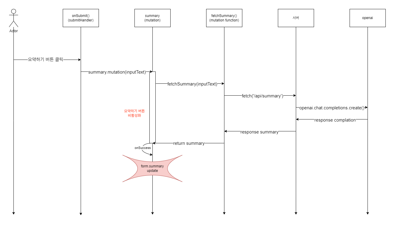 이에 앞서 요약하기 버튼을 클릭한 후 응답을 받을 때까지는 다시 요약하기 버튼을 클릭하지 못하도록