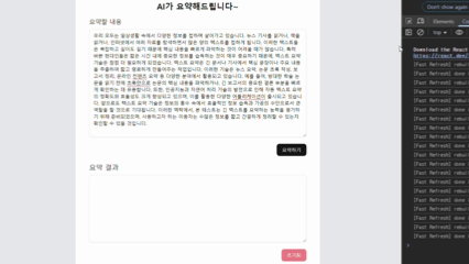 이제 요약하기 버튼을 클릭하면 사용자가 입력한 내용을 요약한 후