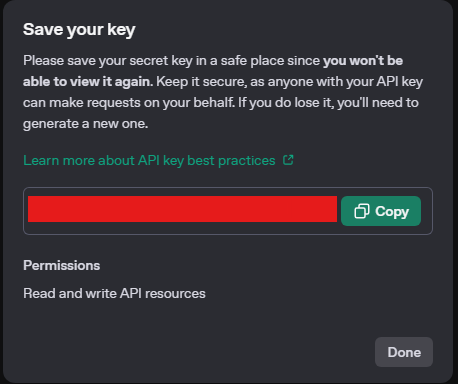 API 키를 복사한 후 .env 파일(없으면 새로 생성)에 아래와같이 추가한다